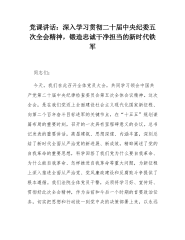 党课讲话:深入学习贯彻二十届中央纪委五次全会精神,锻造忠诚干净担当的新时代铁军同志们:今天,我们在此召开全体党员大会,共同学习领会中国共产党第二十届中央纪律检查委员会第五次全体会议精神。这次全会,是在我们党迈上全面建设社会主义现代化国家新征程、向第二个百年奋斗目标进军的关键节点,在“十五五”规划谋篇布局的重要时刻,召开的一次具有里程碑意义的会议。总书记发表的重要讲话,高屋建瓴、思想深邃、内涵丰富,深刻总结了新时代全面从严治党的新进展、新成效,精辟阐述了党的自我革命的重要思想,科学回答了我们党为什么要自我革命、为什么能自我革命、怎样推进自我革命等重大问题,为新征程上深入推进全面从严治党、党风廉政...