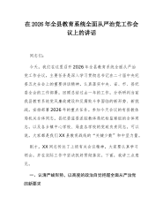 在区政协2026年全面从严治党暨党风廉政建设工作会议上的讲话同志们:今天,我们在此召开区政协2026年全面从严治党暨党风廉政建设工作会议,主要任务是深入学习贯彻总书记在二十届中央纪委五次全会上的重要讲话精神,全面落实中央及省、市、区纪委全会的工作部署,回顾总结2025年区政协的党风廉政建设工作,研究部署2026年的重点任务。下面,我讲几点意见。首先,简要回顾过去一年的工作。2025年,是全面贯彻落实党的二十大精神的关键之年,也是*区在全面振兴新突破三年行动中承上启下的重要一年。一年来,区政协党组坚决扛起全面从严治党主体责任,以党的政治建设为统领,一体推进思想建设、组织建设、作风建设和纪律建设,...