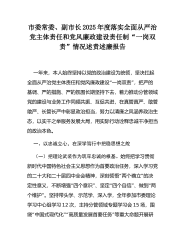 市委常委、副市长2025年度落实全面从严治党主体责任和党风廉政建设责任制“一岗双责”情况述责述廉报告一年来,本人始终坚持以党的政治建设为统领,坚决扛起“”全面从严治党主体责任和党风廉政建设一岗双责,把严的基调、严的措施、严的氛围长期坚持下去,着力推动分管领域党的建设与业务工作同频共振、互促共进,在真管真严、敢管敢严、长管长严中彰显政治担当,努力以清廉之风涵养政治生态,以实干之举服务发展大局,用实际行动诠释忠诚干净担当的政治本色。一、以忠诚立心,在深学笃行中把稳思想之舵(一)把理论武装作为筑牢忠诚的根基。始终把学习贯彻新时代中国特色社会主义思想作为首要政治任务,深入学习党“”的二十大和二十届四中...