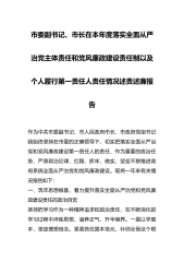市委副书记、市长2022年度落实全面从严治党主体责任和党风廉政建设责任制以及个人履行第一责任人责任情况述责述廉报告作为中共XX市委副书记、XX市人民政府市长,市政府党组书记,我始终坚持在市委的正确领导下,切实把落实全面从严治党和党风廉政建设第一责任人的责任,作为重要的政治任务、严肃政治纪律,扛稳、抓牢、做实,坚定不移推进政府系统全面从严治党和党风廉政建设。现将一年来有关情况报告如下:一、筑牢思想根基,着力提升落实全面从严治党和党风廉政建设责任的政治自觉坚持把学习作为一种精神追求和政治责任,在不断深化的学习过程中淬炼思想、涵养正气、升华境界。一是以学固本,坚定理想信念。紧紧抓住固本培元、补钙壮骨...