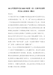 XX公司党委书记在2025年度党(总)支部书记述职评议会上的讲话(精品)