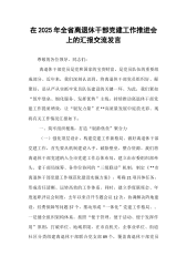 在2025年全市社会心理服务体系建设经验交流会议上的发言尊敬的各位领导、同仁:近年来,社会心理服务体系建设已成为基层治理现代化的重要组成部分。XX县坚持党建引领,积极探索“‘X’心比心‘X’心而治”心理服务模式,以系统化、专业化、多元化路径推动社会心理服务融入基层治理全过程。现结合工作实际,从三方面汇报经验,以期为兄弟地区提供参考。一、强化党建引领,构建协同高效的社会心理服务组织体系基层治理效能提升离不开科学完备的组织架构。XX县将党建优势转化为社会心理服务体系建设效能,通过制度设计、机制优化、网络延伸,构建起权责明晰、运转顺畅的工作体系,为服务开展奠定坚实基础。(一)健全制度体系,筑牢治理根...