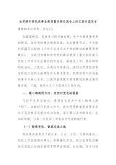 在全省新时代党建引领基层治理示范区建设经验交流会议上的汇报发言尊敬的各位领导,同志们:总书记强调,要加强基层党组织对各类组织的统一领导,把党组织的意图变成各类组织参与基层治理的行动,把党的主张转化为群众的自觉行动。创建新时代党建引领基层治理示范区,是深入贯彻新时代中国特色社会主义思想特别是党的建设重要思想的实践创新路径。近年来,我市认真落实市委创建新时代党建引领基层治理示范区工作部署,按照县委构建“多元共治”新格局具体要求,推动村与集团深化“村企结对暨党建共建”实践探索,聚力打造“村企结对强村富民”党建品牌・,奋力蹚出村企共建、携手奔“富”的乡村振兴新路子。现将有关情况汇报如下:一、突出党建领...