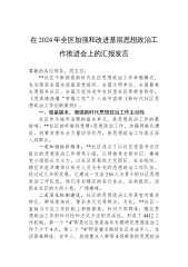 在2024年全区加强和改进基层思想政治工作推进会上的汇报发言