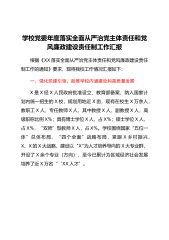 学校党委年度落实全面从严治党主体责任和党风廉政建设责任制工作汇报根据《XX落实全面从严治党主体责任和党风廉政建设责任制工作的通知》要求,现将我校工作情况汇报如下:一、强化党建引领,助推学校内涵建设和高质量发展X是X经X人民政府批准设立、教育部备案、纳入国家计划内统一招生的X校,规划用地近X亩,现有在校生X万余人,教职工X人,专任教师X人,其中教授X人,副教授X人,高级职称比例X%;具有博士学位X人,占X%;硕士学位X人,占X%,“双师”型教师X人,占X%。学校围绕国家“五位一体”总体布局、“四个全面”战略布局,紧跟X乡村振兴、X、X的X大战略,建设以“X”为人才培养导向的X大专业群,开设了X余...