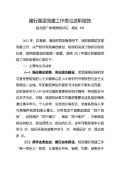 县纪委监委机关第一党支部书记2022年抓基层党建述职报告(2470字)2022年,在机关党委的正确领导下,我紧紧围绕新时代党的建设总要求,认真履行基层党建工作第一责任人职责,高标准严要求落实基层党建任务,支部标准化、规范化水平不断提升,各项工作取得良好成效。现将履职情况汇报如下:一、履职情况(一)提高思想认识,压实党建责任。牢固树立“抓好党建是本职、不抓党建是失职、抓不好党建是不称职”的观念和“党建+”的工作理念,认真履行《中国共产党党组工作条例》《中国共产党党和国家机关基层组织工作条例》规定的各项责任,严格落实基层党建各项制度,改进工作方法,创新工作理念,组织制定了《xx年度党建工作计划》,...