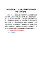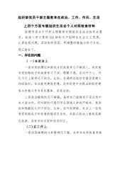 组织部党员干部主题教育在政治、工作、作风、生活上四个方面专题组织生活会个人对照检查材料按照市委关于开好主题教育专题组织生活会的有关要求,我深入学习贯彻XXX新时代中国特色社会主义思想,认真检视问题,深刻剖析原因,明确整改措施与努力方向。现汇报如下。一、存在的问题(一)在政治上一是对党的理论和路线方针政策学习不够深入。有时候对党的路线方针政策学习不深、理解不透,在内外于心、外化于行上做得还不到位。比如,在调研总结农村基层党建工作经验时,往往就党建说党建,没有把党中央提出的抓党建促乡村振兴作为有机整体、系统总结。二是政治敏锐性还不够强。虽然自己能做到不妄议党中央大政方针,但对新时代意识形态领域斗争...