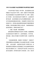 2021年企业党建工作会议贯彻落实“回头看”情况汇报材料今年是中国共产党成立100周年,是全国国有企业党的建设工作会议召开5周年。按照《党委关于开展全国国有企业党的建设工作会议精神“回头看”工作》要求,集团立足工作实际,结合当前的党史学习教育工作,认真组织开展“回头看”,旨在贯彻落实XJP总书记重要讲话精神,总结五年来加强党的建设成功经验,对标梳理工作落实中存在的差距不足,研究提出新发展阶段持续提升党建质量的具体措施,推动党的建设不断迈上新台阶,为做强做优做大提供坚强保证。现将有关情况汇如下。一、落实“回头看”对标自查情况按照党委有关贯彻落实“回头看”工作部署,集团紧密结合当前的党史学习教育工...