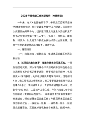 2021年度党委书记抓党建述职评议考核暨落实全面从严治党主体责任述职报告
