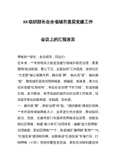XX组织部长在全省城市基层党建工作会议上的汇报发言