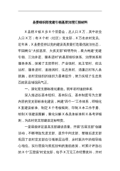 党建引领基层治理工作汇报材料 **县坚持以党建为引领,以网格化管理为抓手,搭建村民代表议事和矛盾多元化解两个专群平台,强化三个激励保障,充分调动了党员干部、村民代表、广大群众参与基层治理的积极性,有效提升了基层治理水平。2022年,全县无重大刑事案件,无一起命案发生,“三零”创建村(社区)达标率*%,企事业单位达标率*%。 一、打造党建一张网格,大事小情有人抓 充分发挥党员联户和村民代表作用,建立乡镇党委统筹、村“两委”主导、党员联户、村民代表参与的网格化管理服务体系。一是村民代表全部入格。在村党支部书记、村委会主任三级网格和其他村“两委”干部四级网格的领导下,村民代表全部任微网格员,实...