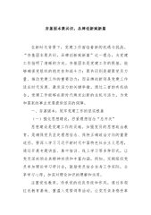理论文章:以党建品牌激活文化动能:国企“红色引擎”与“文化名片”的协同打造国有企业是国民经济的重要支柱,在国家经济社会发展中承担着重要责任。党建工作是国有企业独特的政治优势,而企业文化是企业核心竞争力的重要组成部分。随着市场竞争的加剧和企业发展的需要,将党建品牌与企业文化协同打造,以党建品牌激活文化动能,成为国有企业提升综合实力、实现可持续发展的重要途径。一、党建品牌与企业文化的内涵及相互关系(一)党建品牌的内涵党建品牌是指以党的建设为核心,以服务企业发展、服务员工群众为目标,通过整合党建资源、创新党建工作方式方法,形成具有独特性、创新性和影响力的党建工作载体和模式。党建品牌具有鲜明的政治导向...