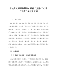 2025年上半年党建工作总结、党支部工作总结素材汇编(47篇)目录1.张敏:“4+3”模式推进党支部标准化规范化建设…12.韶关学院文学与传媒学院孙萌:“党建+”理念下学生党支部品牌化实践与提升路径研究…53.高凯霞国网山西省电力公司李彬:“横五融纵四维”一体化推动党支部企业文化建设和思想政治工作标准化…134.黄来军:“三项举措”提升国企党支部工作质效…185.范雅思:“四聚力”激发党支部建设新活力…226.李红坡:“五力齐用”激活基层党支部“红色动能”…267.国能大渡河大岗山发电有限公司李丽:“五强”党支部建设夯实基层发展基础…308.中国气象报通讯员吴军:北京市怀柔区气象局机关党支部助...