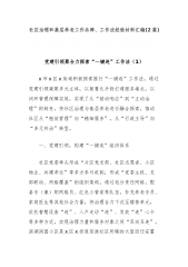 在全省新时代党建引领基层治理示范区建设经验交流会议上的汇报发言尊敬的各位领导,同志们:总书记强调,要加强基层党组织对各类组织的统一领导,把党组织的意图变成各类组织参与基层治理的行动,把党的主张转化为群众的自觉行动。创建新时代党建引领基层治理示范区,是深入贯彻新时代中国特色社会主义思想特别是党的建设重要思想的实践创新路径。近年来,我市认真落实市委创建新时代党建引领基层治理示范区工作部署,按照县委构建“多元共治”新格局具体要求,推动村与集团深化“村企结对暨党建共建”实践探索,聚力打造“村企结对强村富民”党建品牌・,奋力蹚出村企共建、携手奔“富”的乡村振兴新路子。现将有关情况汇报如下:一、突出党建领...