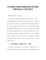 在全省新时代党建引领基层治理示范区建设经验交流会议上的汇报发言