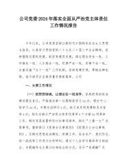 公司党委2024年落实全面从严治党主体责任工作情况报告