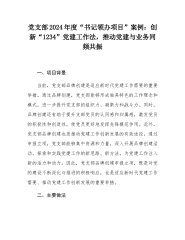 党支部2024年度“书记领办项目”案例:创新“1234”党建工作法,推动党建与业务同频共振