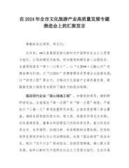 在2024年全市文化旅游产业高质量发展专题推进会上的汇报发言