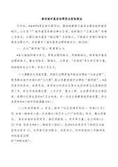 推动城市基层治理亮点经验做法近年来,*省*市*县坚持问题导向,围绕破解提升基层治理效能的瓶颈制约,以打造“”城市基层党建品牌为引领,创新推行“五微五联”党建工作体系,以强化城市基层“微治理”为突破口,不断提升党建引领城市基层治理水平,有效激发了城市基层治理的新活力、新动能。一、优化"微网格"组z联建聚合力*县以基础网格为单元,聚焦治理网格化、网格精细化,探索城市基层治理新路子,整合网格员、楼栋长、志愿者、"双报到"单位党员等力量,持续做好结合文章,形成工作合力。(一)调整优化网格设置。网格化治理是城市基层治理的“毛细血管”,要想解决城市发展中的"大问题",就必须重视城市治理的“微网格”。*县坚...