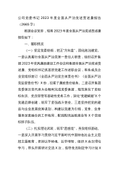 公司党委书记2023年度全面从严治党述责述廉报告根据会议安排,现将2023年度全面从严治党述责述廉报告如下:一、履职情况(一)坚定党委统领,把正“方向盘”,固化政治建党。一是认真履行全面从严治党第一责任人职责,组织召开集团2023年党风廉政建设工作会议和集团全面从严治党述责述廉、党组织书记抓基层党建工作述职会议,和各成员企业党组织签订《全面从严治党主体责任书》《全面从严治党监督责任书》x份,拉紧了廉政责任链条。二是召开集团党委第一次党代表大会顺利完成党委换届,规范落实了党组织生活、党员管理等基础性党务工作,深化“党建赋能”x个党建品牌创建,筑牢了坚强战斗堡垒。三是坚持把党的建设与企业发展统筹谋...