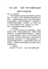 “一院一品牌、一支部一特色”党建特色品牌创建工作实施方案各院(处)级党组织:为全面贯彻新时代党的建设总要求和新时代党的组织路线,进一步落实《中国GC党普通高等学校基层组织工作条例》,增强基层党组织政治功能,建立健全基层党建工作长效创新机制,全面提升基层党建水平,推进党建工作和学校事业发展深度融合,结合我校《2022年党政工作要点》和“能力作风建设年”活动,现就开展“一院一品牌、一支部一特色”党建特色品牌创建工作安排如下。一、指导思想以XXX新时代中国特色社会主义思想为指导,全面贯彻落实XX精神,坚持以政治建设为统领,牢固树立大抓基层鲜明导向,在全面建强基层党组织的基础上,创建和培育一批具有较强...