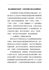 国企党建经验交流:以党建品牌创建引领开创党建工作新格局近年来,XX党委按照新时代党的建设总要求和新时代党的组织路线,坚持党对国有企业的坚强领导,坚持以高质量党建引领企业高质量发展,全面落实集团“XX先锋”党建品牌创建工作要求,以契合时代特征、贴合集团要求、符合公司实际为导向,深入开展了“一颗初心、三级共创”党建品牌创建活动,即:坚守XX报国初心,争创“五型”领导班子、争当“五个”标杆党支部、争做“五个先锋”共产党员。通过持续丰富“三级联创”活动内涵,不断创新党建工作载体,扎实推进基层党建理念创新、机制创新、载体创新,进一步丰富党建品牌体系与内涵,实现党建工作与企业经营双融合双促进双提升。一、争...
