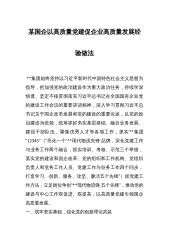 某国企以高质量党建促企业高质量发展经验做法**集团始终坚持以习近平新时代中国特色社会主义思想为指导,把加强党的政治建设作为重大政治任务,持续学深悟透、坚定不移贯彻落实习近平总书记在全国国有企业党的建设工作会议的重要讲话精神,深入学习贯彻习近平总书记关于国企改革发展和党的建设的重要论述,以党的政治建设为统领,统筹抓好夯实基层基础、融合业务发展、建强干部队伍、聚集优秀人才等各项工作,抓实**集团“12345”(“亮化一个‘**现代物流先锋’品牌,深化党建工作与业务工作两个融合,抓实培训、考核、示范三个举措,落实党的建设和国企改革、党的组织和工作机构、党组织负责人和党务工作人员、党建工作与业务工作...