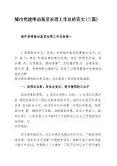 城市党建推动基层治理工作总结范文(三篇)