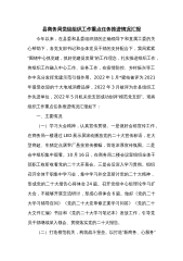数据资源管理局2022年重点工作上半年完成情况(区县)2022年是党的二十大召开之年,也是实施“十四五”规划的关键之年,县数据资源管理局积极落实省委“一改两为五做到”要求,统筹疫情防控和经济社会发展,认真落实“放管服”改革,不断优化政务服务营商环境,奋力打造“宿事速办”营商环境品牌,以优异成绩迎接党的二十大胜利召开。现将半年来工作开展情况汇报如下:一、重点工作开展情况(一)突出政治统领,推动党建工作取得实效注重政治理论学习。局党组立足实际,制定详实、精准的年度党组理论中心组学习计划,充分发挥“学习强国”、“干部教育在线”等平台作用,加强对党纪法规、《信访条例》、优化营商环境条例等法律法规政策的...