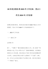 XX区政务服务局2023年工作总结、亮点工作及2024年工作安排