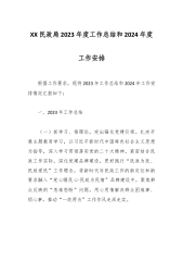 XX区政务服务局2023年工作总结、亮点工作及2024年工作安排按照区委通知要求,现将区政务服务局2023年重点工作开展情况、亮点工作及2024年工作安排报告如下:一、2023年工作总结(一)重点工作1.党建工作第一、“党建+”模式助推政务服务工作。深入推进“党群阵地+线上平台+帮办代办”党建品牌建设,把党建优势转化为工作优势。通过进驻大厅窗口党员起先锋模范带头作用,支持党员带业务骨干全面推行“不见面”办事,进一步加大全区政务服务平台建设力度,提升政务服务“一网通办”能力。第二、党建引领民族团结,铸牢中华民族共同体意识。我局传达学习《以铸牢中华民族共同体意识为主线——加快推动民族事务治理体系和...
