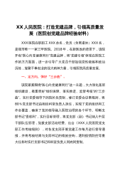 XXX人民医院:打造党建品牌,引领高质量发展(医院创党建品牌经验材料)