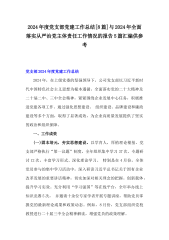 2024年度党支部党建工作总结[8篇]与2024年全面落实从严治党主体责任工作情况的报告5篇汇编供参考