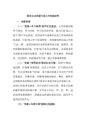 某国企党建创新工作经验:构建党建“多元融合”矩阵,推动党建工作高质量发展近年来,XX集团认真贯彻落实XXX关于国企党建工作新要求,牢固树立“把方向谋发展、强基础创品牌、聚合力抓落实”工作思路,坚持以政治建设为统领,服务生产经营不偏离,把提高企业效益、增强企业竞争实力和提升职工的幸福指数作为出发点和落脚点,以党建工作与企业发展统筹推进的多元“融合”为路径,守正创新、笃行致远,将党建工作与中心工作深度融合,延展深化“党建+x”目标管理,着力构建“党建基础标准化、党建运行系统化、党建功能融合化、党建成果实效化”党建“四化”工作体系,推动基层党支部和党员在服务创新发展、服务安全生产、服务职工群众中发挥...