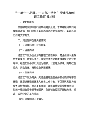 “一单位一品牌、一支部一特色”党建品牌创建工作总结汇报2000字