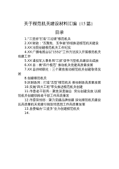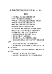 关于模范机关建设的材料汇编(49篇)目录1.XX区委编办努力打造创新型模范机关2.XX市:着力建设“四型”模范机关3.XX税务:夯实政治机关建设倾情服务发展大局4.XX税务:推动政治机关建设走深走实5.XX县开展三级联动模范机关建设活动6.创建“四强”党支部深化模范机关建设7.打造模范机关紧盯关键抓创建落在实处见实效8.党政办公室:坚持党建引领打造过硬模范机关9.加强党建规范化建设打造“五型”模范机关10.加强政治机关建设增强党建工作活力11.坚持“三个聚焦”争创模范机关12.坚持“四个用力”助力打造模范机关建设13.建设“六型模范机关”打造“绿美河湖幸福盘龙”党建品牌14.建设“五过硬”模范...