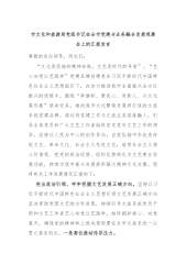 市文化和旅游局党组书记在全市党建与业务融合发展观摩会上的汇报发言尊敬的各位领导,同志们:“文化是民族的精神命脉,文艺是时代的号角”。“艺心向党以艺践学”党建品牌创建是在习近平新时代中国特色社会主义思想指引下,在加力推进我市全面振兴全方位振兴的进程中,围绕“举旗帜、聚民心、育新人、兴文化展形象”使命任务,推动我市文化繁荣发展而打造的文旅系统党建品牌。通过将党建工作与文旅业务深度融入,引导全体党员和广大文艺工作者始终坚定党对文艺工作的领导,坚持以人民为中心的创作导向,自觉弘扬中华优秀传统文化、革命文化、社会主义先进文化,培育社会主义核心价值观、把党的政治优势、组织优势转化为文艺事业发展动能,持续为...