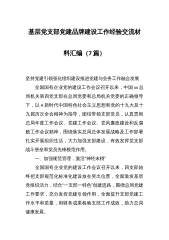 (7篇)基层党支部党建品牌建设工作经验交流材料汇编