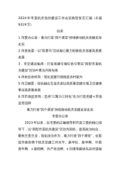 2024年市直机关党的建设工作会议典型发言汇编(6篇)目录1.“”市委办公室:着力打造四个课堂持续推动机关党建走深走实2.“”市发改委:以双赛马活动凝心聚力助推机关党建高质量发展3“.市交通运输局:打造党建引领红色引擎在四型市直”机关建设活动中勇当开路先锋4.市农业农村局:强化党建引领推进乡村振兴5.市卫健委:强化融合互促共进以高质量党建引领卫生健康事业高质量发展6.“”市市场监管局:坚持三聚力三转化全力打造党建+市场监管品牌“”着力打造四个课堂持续推动机关党建走深走实市委办公室2023年以来,在市委的正确领导和市直工委的精心指导“”下,以四型市直机关建设活动为契机,提高政治站位,聚“”焦主责...