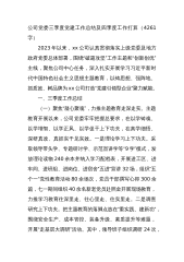国企品牌建设工作做法:以七个“着力”为抓手,推动“七彩党建”品牌建设为全面建设具有行业竞争力,公司党委牢记习近平总书记视察企业时的殷殷嘱托,认真学习习近平新时代中国特社会主义思想,全面贯彻落实党的二十大精神,以七个“着力”为抓手,全面推进基层党建提质增效,推动“七彩党建”品牌建设。一、着力抓好政治建设,启动“红色引擎”(一)加强政治思想引领。建立完善党委会学习贯彻习近平总书记重要指示批示精神的“第一议题”制度,健全工作体系、完善落实机制、形成工作闭环。精准落实党委前置研究把关企业重大经营管理事项机制,发挥党委把方向、管大局、保落实作用。(二)深化创新理论武装。贯彻落实习近平新时代中国特色社会主...