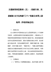主题教育典型案例(五):党建引领,实践赋能全方位构建“三个+”党建立体育人新格局(学校经验总结) 一、背景介绍 以A新时代中国特色社会主义思想和党的二十大精神为指导,全面落实新时代党的建设总要求,大数据与人工智能学院党委贯彻落实“对标争先”建设计划,把党的建设摆在突出位置来抓实抓好,紧扣“党委政治核心作用、党支部战斗堡垒作用、党员先锋模范作用”,围绕“党建引领,实践赋能”,依托“党建+业务”、“党建+育人”、“党建+品牌”构建以党建文化为载体的德育工作全方位立体育人新格局。培育新时代优秀青年马克思主义者,充分发挥基层党组织育人功能,不断创新党建载体,探索育人新模式,有效增强育人实效性。 ...