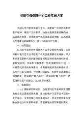 党建引领保障中心工作实施方案 为深入学习贯彻党的二十大、省委第**次党代会和市委**精神,根据**文件要求,为深化我局党建品牌内涵,拓宽载体外延,持续推动**机关党建提质增效,以高质量机关党建引领保障中心工作,特制定如下方案: 一、指导思想 以习近平新时代中国特色社会主义思想为指导,全面对标对表习近平总书记关于机关党建重要论述精神,深入贯彻落实新时代党的建设总要求和新时代党的组织路线,紧盯“走前列、作表率”目标要求,突出“双建争先”引领,一体推进机关党的各项建设,全面建强机关党的各级组织,高水平打造“讲政治、守纪律、负责任、有效率”的清廉机关、模范机关,坚决拥护“两个确立”,坚决做到“两...
