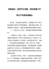 经验做法:坚持守正创新,推动党建工作和生产经营深度融合