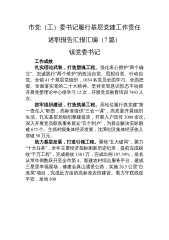 市党(工)委书记履行基层党建工作责任述职报告汇报汇编(7篇)镇党委书记工作成效扎实理论武装,打造塑魂工程。强化衷心拥护“两个确立”、忠诚践行“两个维护”的政治自觉、思想自觉、行动自觉。全镇41个基层党组织,1034名党员全面学习、全面把握、全面落实党的二十大精神。坚持党管意识形态不动摇开展党委理论中心组学习12次,开展党员教育培训7443人次。抓牢组织建设,打造筑基工程。高站位履行抓党建“第一责任人”职责,高标准组织“三会一课”,高质量开展组织生活。扎实基层党组织整建提质,开展入户宣传2000余次。深入开展党员联系服务群众“五个到户”,为群众解决实际困难673个。主抓村级集体经济发展,沈潭社区...