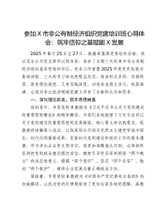 参加X市非公有制经济组织党建培训班心得体会:筑牢信仰之基赋能X发展2025年8月25日至27日,根据X集团党委组织安排,我以实业公司党支部书记的身份,参加了为期三天的X市非公有制经济组织基层党组织书记、党务工作者暨2025年度党员发展对象培训班。三天的学习时光短暂且充实,培训形式多样、安排周密,既有理论高度,又有实践深度,对我来说意义非凡,收获满满。让我对非公经济领域党建工作有了全新的认识和思考。一、深化理论武装,筑牢思想根基培训首日,市委党校X教授对《习近平总书记关于党的党的重要思想概论》的精彩解读,为我们系统梳理了习近平总书记关于党的党的重要思想的发展脉络、核心要义和实践要求。侯教授的讲解...