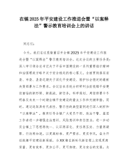 在镇2025年平安建设工作推进会暨“以案释法”警示教育培训会上的讲话同志们:今天,我们在这里隆重召开全镇2025年平安建设工作推进会暨“以案释法”警示教育培训会。这次会议的主要任务是:深入学习领会总书记关于平安中国建设的一系列重要指示精神和治国理政方略中关于安全稳定的核心要义,全面贯彻落实省委、市委、县委近期关于深化平安建设、维护社会稳定的最新决策部署与工作要求。会议旨在系统分析研判当前我镇平安建设面临的新形势、新挑战、新任务,科学谋划、周密部署今冬明春及未来一个时期全镇平安建设的重点工作和关键举措。同时,通过选取具有代表性、警示性的典型案例进行深入剖析和“以案释法”,教育引导全镇广大党员干部...