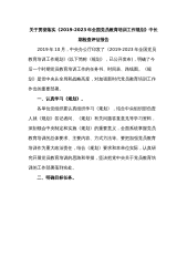 关于贯彻落实《2019-2023年全国党员教育培训工作规划》中长期检查评估报告2019年10月,中央办公厅印发了《2019-2023年全国党员教育培训工作规划》(以下简称《规划》,已公开发布),明确了今后一个时期党员教育培训工作的任务书、时间表、路线图。《规划》是党中央从全局和战略高度,对加强新时代党员教育培训工作作出的重要部署。一、认真学习《规划》。各单位党组织要认真组织学习《规划》,结合中央组织部负责人就《规划》答记者问、《规划》有关问题答复意见等学习资料,深刻领会中央制定和实施《规划》的重要意义,全面系统掌握党员教育培训的总体要求、主要内容、方式方法等。要把加强党员教育培训作为重大政治责...