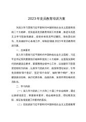 单位开展党的二十大精神专题培训的工作方案根据《中共中央关于认真学习宣传贯彻党的二十大精神的决定》,按照XXXX(上级党组织)工作安排和2022年度培训计划,经与XX部门研究,定于11月举办3期学习贯彻党的二十大精神专题培训班。具体方案如下:一、培训目标、对象及培训内容(一)培训目标通过有针对性培训,进一步推动各级党员领导干部和广大党员充分认识学习宣传贯彻党的二十大精神的重大意义、全面准确领会党的二十大精神、以党的二十大精神推动发展、指导实践,更好谋划XXX(本单位)2023年及今后一个时期的工作。(二)培训对象组织县处级以上党员领导干部学习贯彻党的二十大精神专题研讨班、各级党组织书记和党务工作...