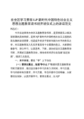 全区学习贯彻新时代特色思想主题教育读书班开班仪式讲话培训