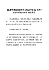 【县委常委宣传部长中心组研讨发言】全力打造新时代宣传工作“四个高地”